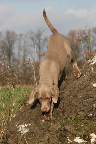 Der Weimi ist ein Denker mit guter Beobachtungsgabe. Diese Fähigkeiten nutzt er auch aus, wenn er darauf wartet bis sie sich umdrehen und in einem Gespräch verwickelt sind, bevor er sich in geduckter Haltung an ihnen vorbei schleicht, sich am Küchentresen ganz langsam aufstellt um ihnen die halbe Erdbeertorte vom Blech zu fressen!